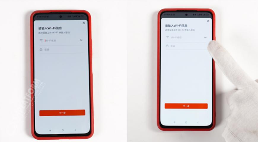 WIFI名字会自动填充到APP中,请输入密码,点击"下一步“。