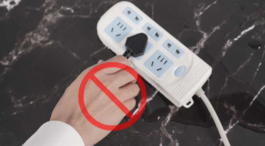 Do not use wet hands to plug or unplug the power plug.